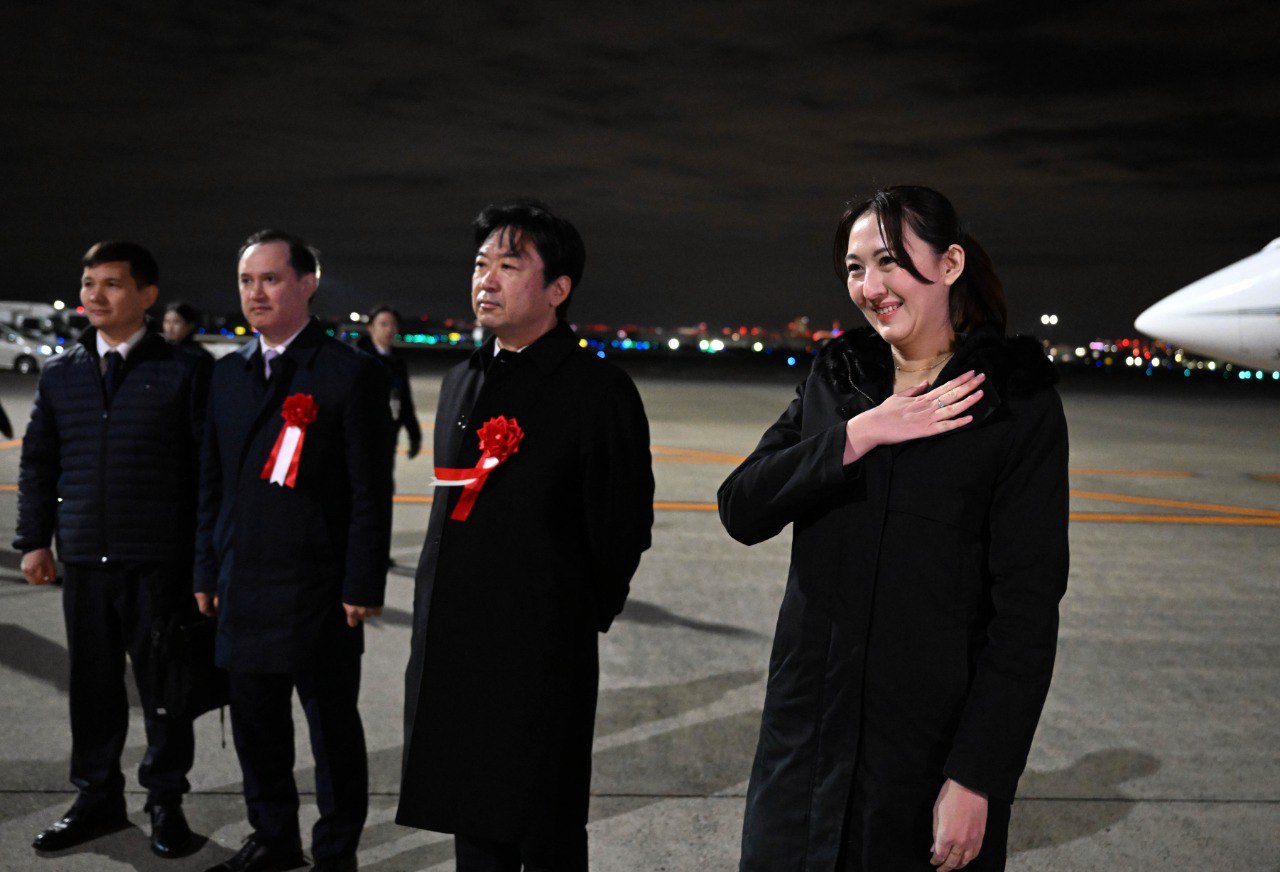 Борт главы государства приземлился в международном аэропорту Ханеда в Токио. В аэропорту вывешены государственные флаги стран Центральной Азии, постелена ковровая дорожка.