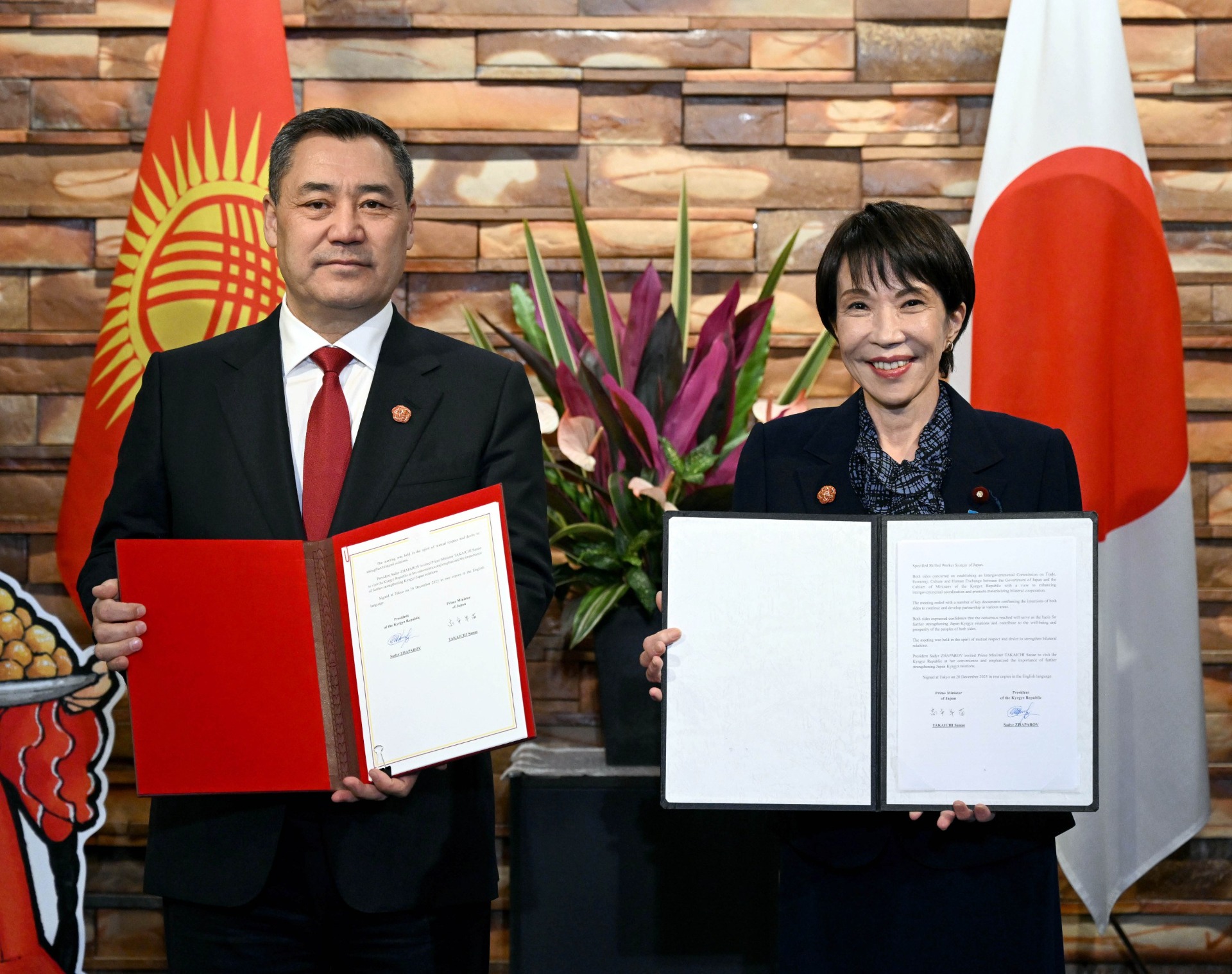 Санаэ Такаити подчеркнула важность создания межправительственной комиссии между Кыргызстаном и Японией по торговле, экономике, культуре и обмену человеческими ресурсами. Выражена готовность сотрудничать в сферах зеленой энергетики, информационных технологий, искусственного интеллекта.