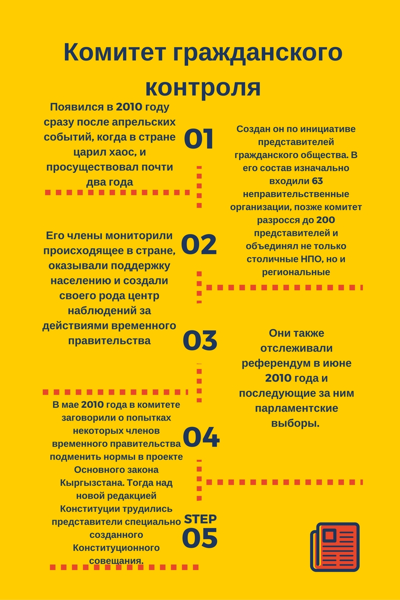 Комитет гражданского контроля поднимал вопрос о прозрачности и публичности принятия решений. В настоящий момент члены комитета обеспокоены спущенной «сверху» инициативой. Татту Мамбеталиева отмечает, что на сегодня в Кыргызстане назрела критическая ситуация, вызванная именно намерением внести поправки в Основной закон.