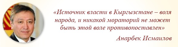 По его словам, ни в одном нормативно-правовом акте КР нет положения, запрещающего изменение Основного закона путем референдума. «Закон о введении в действие Конституции-2010 устанавливает мораторий до 2020 года только для парламента и только на изменение разделов Конституции с третьего по восьмой. Основной закон может меняться либо непосредственно народом, либо парламентом. В случае с поправками, которые вынесены на общественное обсуждение, речь о том, чтобы их принять всенародным волеизъявлением. То есть положение о моратории неприменимо. К сожалению, некоторые юристы либо по незнанию, либо намеренно стараются умолчать об этом или откровенно говорят неправду, стараясь посеять сомнение и вызвать у общественности негативное отношение к попыткам внести поправки в Конституцию», - считает Анарбек Исмаилов.