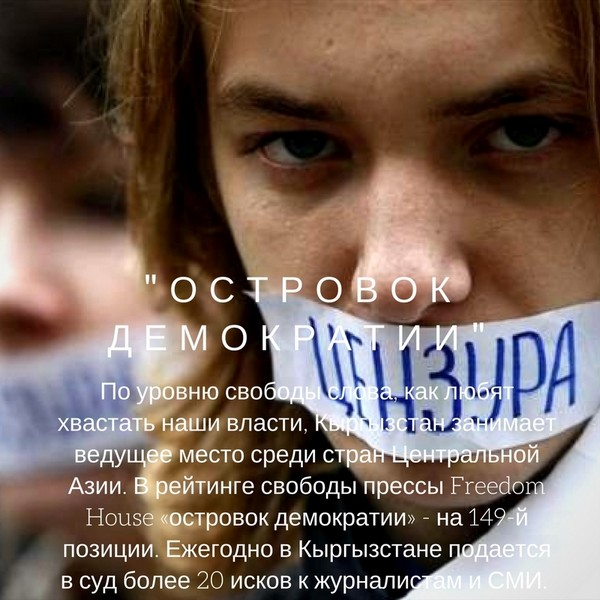 Согласно последнему рейтингу свободы слова Freedom House, Кыргызстан входит в число несвободных стран. Чиновники, увы, так и не научились воспринимать СМИ как «зеркало» и пытаются загнать их «под каблук». И забывают, что журналисты не обслуживающий персонал.