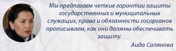 «В Кыргызстане нет ни одной чистой от коррупции зоны», - заявила сегодня на общественных слушаниях по законопроекту о защите лиц, сообщивших о коррупции, депутат Аида Салянова.