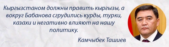 2012 год. Камчыбек Ташиев, известный своими националистическими высказываниями, о своем будущем партнере по тандему Омурбеке Бабанове высказался так: