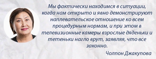По словам Чолпон Джакуповой, в ближайшие дни она пройдет все необходимые процедуры, напишет соответствующее заявление и сдаст депутатский мандат.