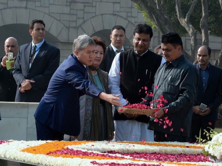 В рамках государственного визита в Индию Алмазбек Атамбаев сегодня принял участие в церемонии возложения венка к мемориалу Махатмы Ганди. Об этом сообщил отдел информационной политики аппарата президента КР.