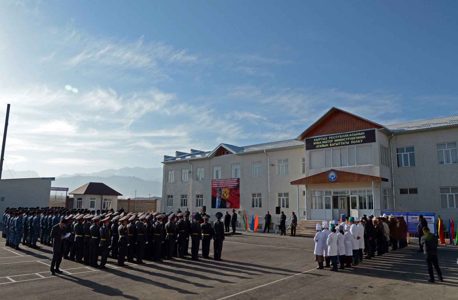 10 ноября. Здание полка специального назначения в Баткене. Президент вручил сертификат на 200 тысяч сомов на покупку спортивного инвентаря для спортивного зала.