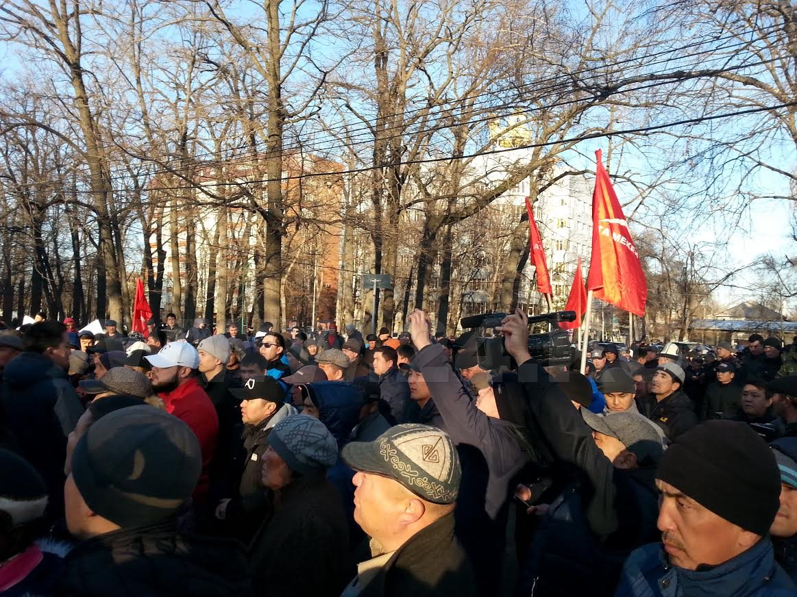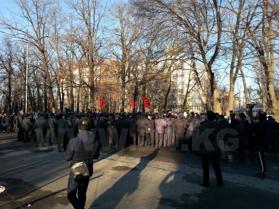 Скандируя: «Свободу Текебаеву!», собравшиеся направились ближе к зданию. Однако сотрудники милиции сдержали натиск толпы.