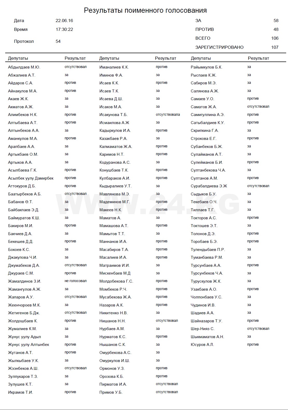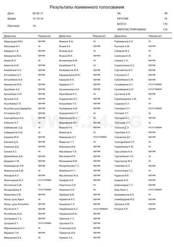 Следует отметить, что в первом чтении законопроект Жогорку Кенеш поддержал год назад, 22 июня. «За» проголосовали 58 депутатов из 106. Во втором чтении многие поменяли мнение и решили не отказываться от привилегий.