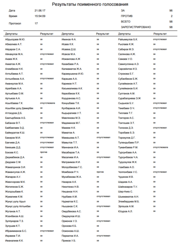Против выплаты госпособий проголосовали Кенжебек Бокоев и Рыскелди Момбеков.