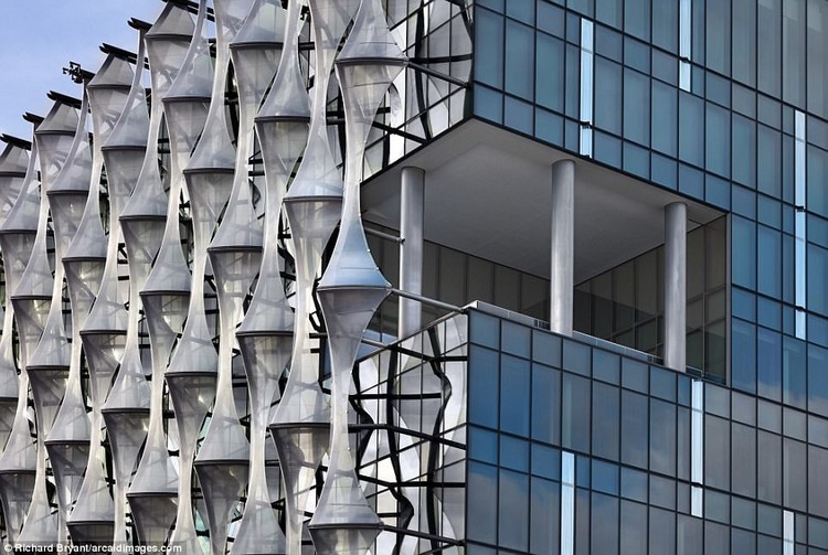 Фасад здания оснащен легкими пластиковыми «парусами», которые преобразуют солнечный свет в энергию. Также они защищают здание от перегрева.