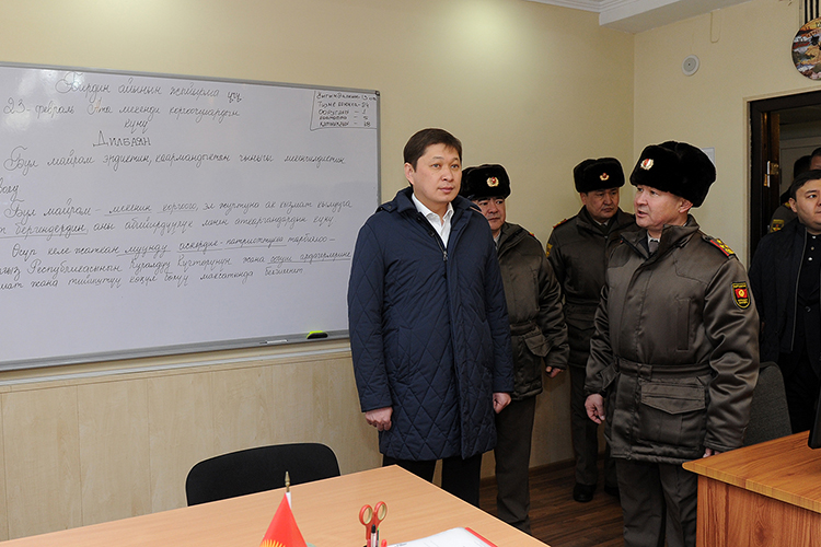 Премьер-министр Сапар Исаков посетил Военный институт Вооруженных сил КР имени Героя Советского Союза генерал-лейтенанта К.Усенбекова. Об том сообщил отдел по связям с общественностью и СМИ аппарата правительства.