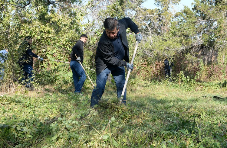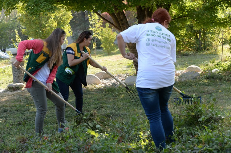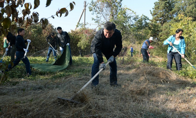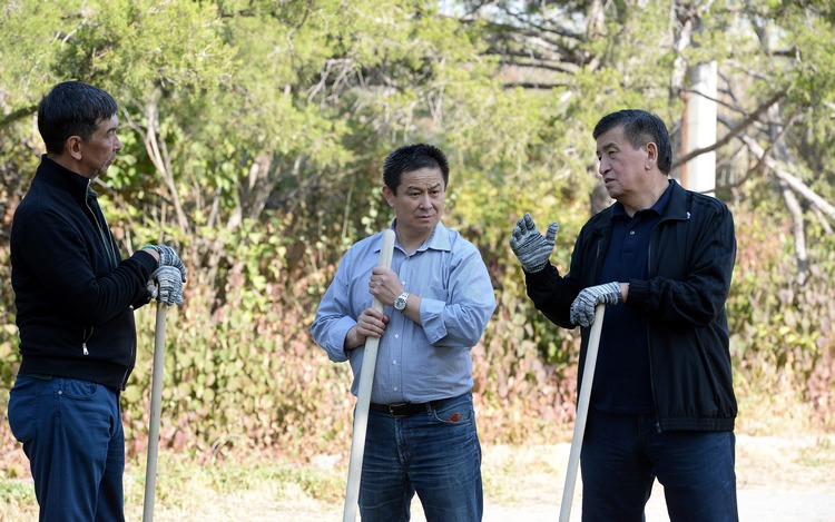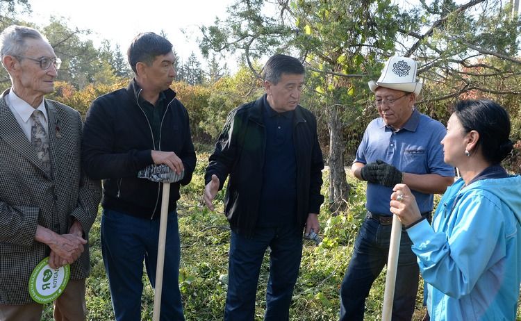 Сооронбай Жээнбеков вместе с сотрудниками аппарата президента очистил территорию сада от сухостоя. К работе подключились и волонтеры общественного фонда «Эко Деми».