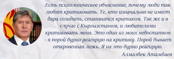 Впрочем, ранее Алмазбек Атамбаев подробно рассказал журналистам о причинах своих эмоциональных выступлений. На июльской встрече с представителями СМИ он поведал о своих недостатках и рассказал, за что его можно критиковать.