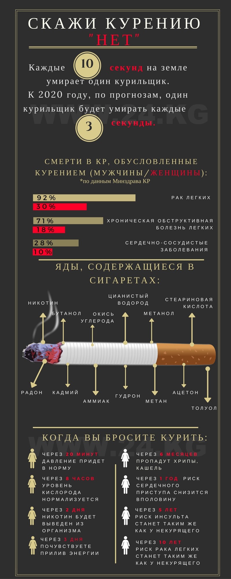 - В Кыргызстане в 2014 году причиной смерти 40 процентов погибших при пожарах стала непотушенная сигарета.