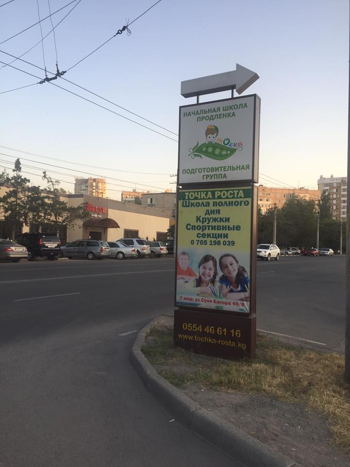 «Уважаемые представители мэрии Бишкека, прошу обратить внимание на рекламный щит «Точка роста», установленный в 7-м микрорайоне на проезжей части по улице Сухе Батора, возле караоке-бара, который создает помеху и неудобства при выезде на дорогу. Совершая поворот налево, закрывает обзор встречной машины, что часто приводит к аварийным ситуациям», — написал пользователь Руслан Кененсариев.
