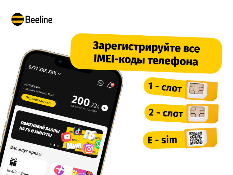 С 25 июня 2024 года в Кыргызстане введена обязательная регистрация IMEI-кодов мобильных телефонов в Государственной системе идентификации (ГСИ). Сотовый оператор «Beeline Кыргызстан» напоминает, что во избежание блокировки необходимо зарегистрировать все IMEI-коды своего телефона.