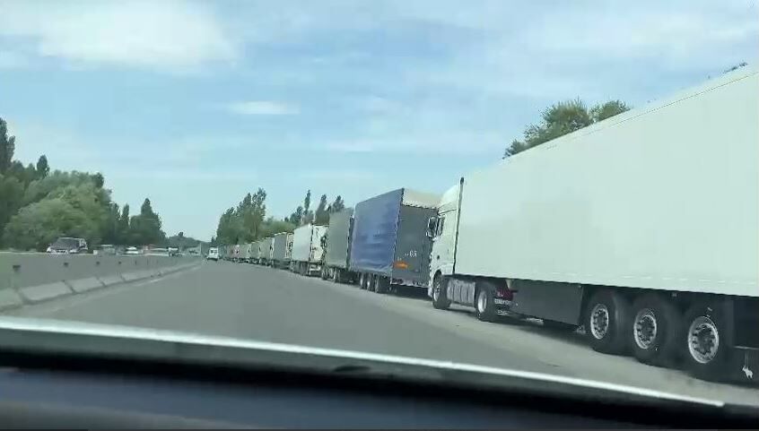 В очереди стоит более 50 грузовиков, а затор растянулся на несколько километров.