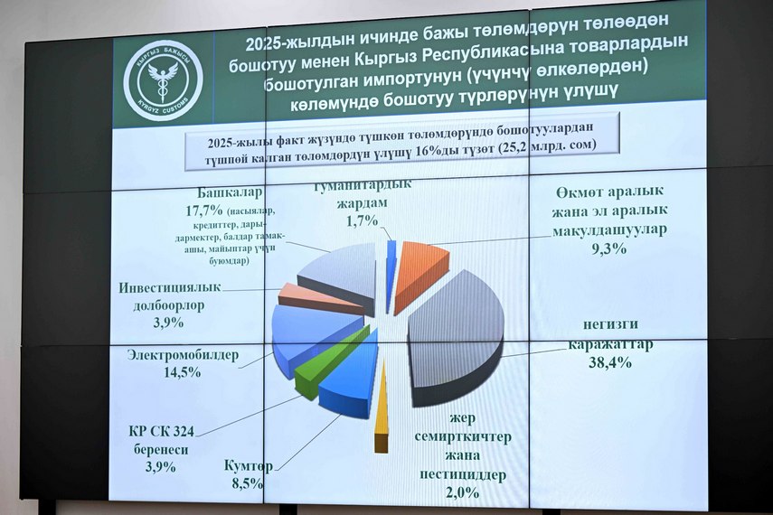 Государственная таможенная служба Кыргызстана по итогам 2025 года собрала 157,4 миллиарда сомов платежей. Об этом стало известно на коллегии ГТС с участием председателя кабинета министров.