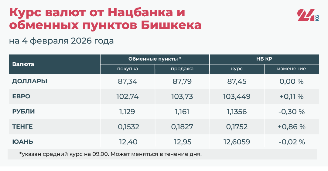 - Официальный курс НБ КР: 0,1752 сома (рост на 0,86 процента). Самый высокий курс с начала 2026 года.