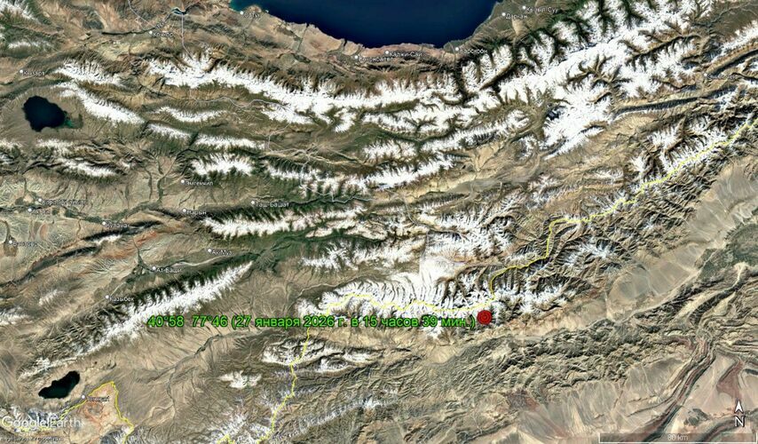 The earthquake’s epicenter was located in China, 160 kilometers southeast of the city of Naryn. The quake was not felt in populated areas.