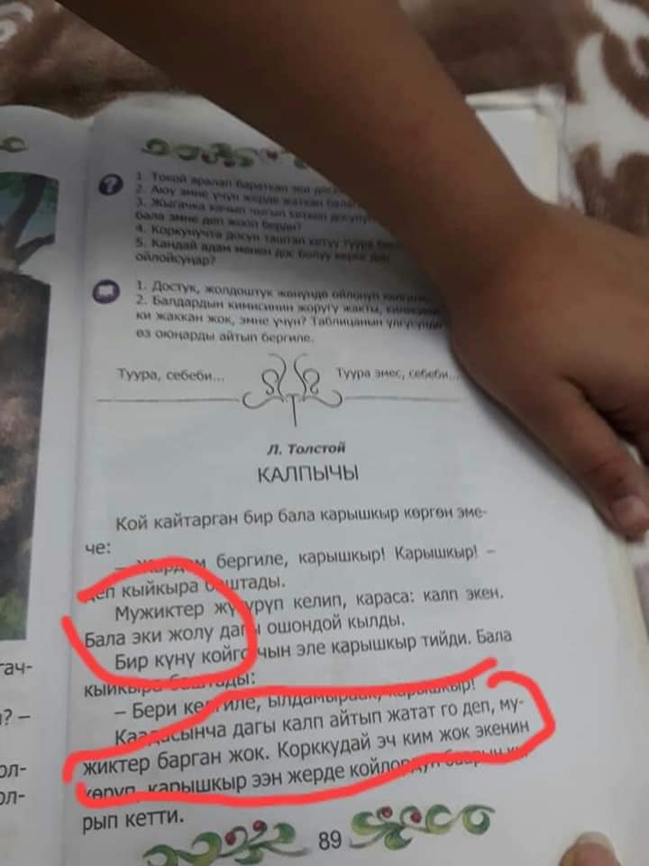 2-класстын окуу китебинде айрым сөздөр кыргыз тилине которулбай басылган. Китептеги катаны социалдык тармактын колдонуучулары белгилешти.