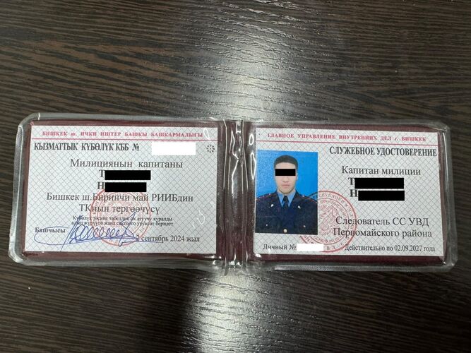 Атайын кызмат жана ИИМдин Тышкы чалгындоо кызматы тарабынан Биринчи май РИИБдин тергөөчүсү, милициянын капитаны Т.Н. кармалды. Бул тууралуу Улуттук коопсуздук боюнча мамлекеттик комитеттин басма сөз борбору билдирди.