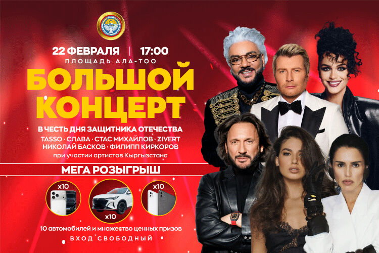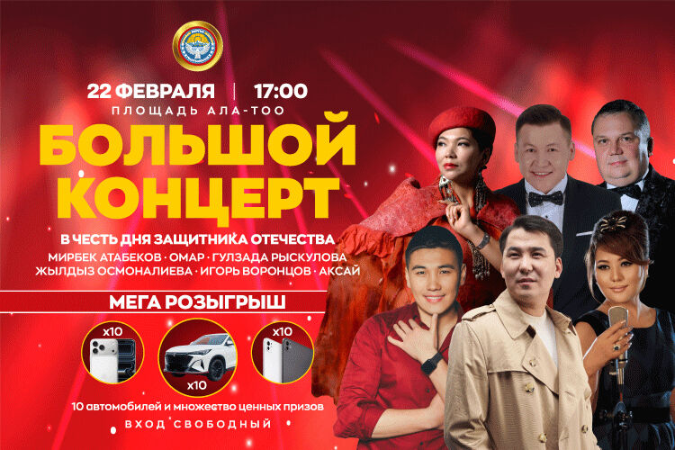 22-февралда Бишкектеги Ала-Тоо аянтында Ата Мекенди коргоо күнүнө карата чоң майрамдык концерт өтөт. Президенттин колдоосу менен өтүүчү бул салтанат шаардын эң ири кышкы сезонундагы иш-чараларынын бири болот. Бул тууралуу мэриядан билдиришти.