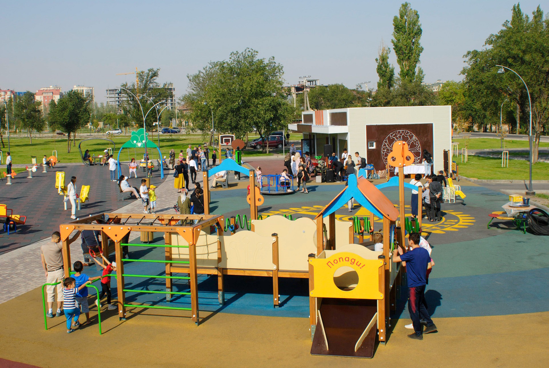 Общий бюджет проекта составил 4 миллиона 400 тысяч сомов. На площадке несколько видов аттракционов, в том числе игровые комплексы с возможностью заезда кресел-колясок, безопасные качели для детей с особыми потребностями, адаптированные песочницы-столики, специальные тактильные панели. Все оборудование изготовлено в России и Турции.