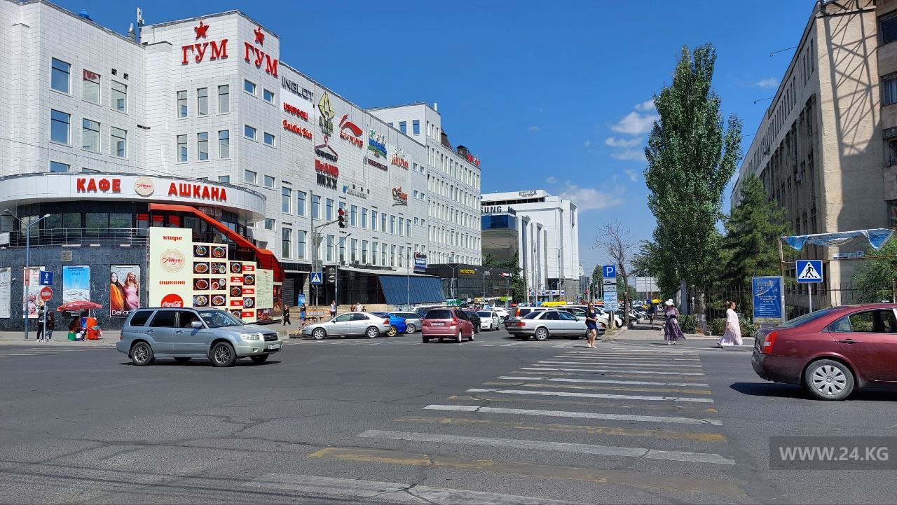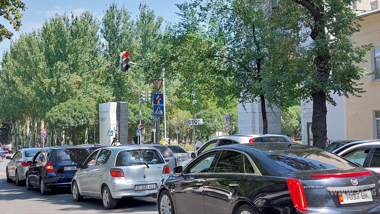 В обеденное время на этих участках пробок не было. Небольшой затор образовался на улице Токтогула от бульвара Эркиндик до улицы Панфилова, где машины сворачивают на север и освобождают дорогу.