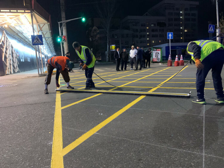 Разметка уже нанесена на пересечении улиц Токтогула и Исанова. Она также появится на следующих перекрестках: