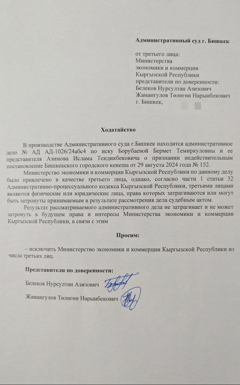 Стало известно, что на последнем заседании суда 31 января представители Министерства финансов и Министерства экономики и коммерции также подали ходатайства о том, чтобы выйти из состава третьих лиц, хотя именно Минфин выдал положительное заключение, что при передаче троллейбусов никаких дополнительных расходов для города не возникнет, а согласно кредитному соглашению от 2015 года, ведомство является «уполномоченным представителем» «заемщика».