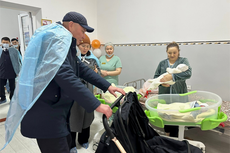 В Кызыл-Кие родились близнецы: полпред президента посетил обновленный роддом