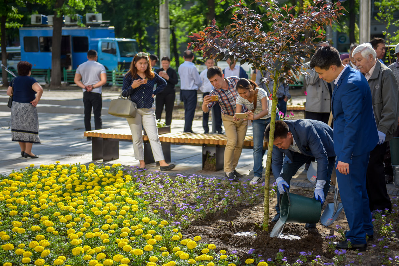В церемонии посадки приняли участие горожане, вице-мэр Бишкека Эркинбек Исаков, глава Свердловской районной администрации Самарбек Болотбеков, сотрудники структурных подразделений мэрии, Чрезвычайный и Полномочный Посол Японии в КР Ямамура Есихиро, глава представительства JICA в КР Кикучи Казухико.