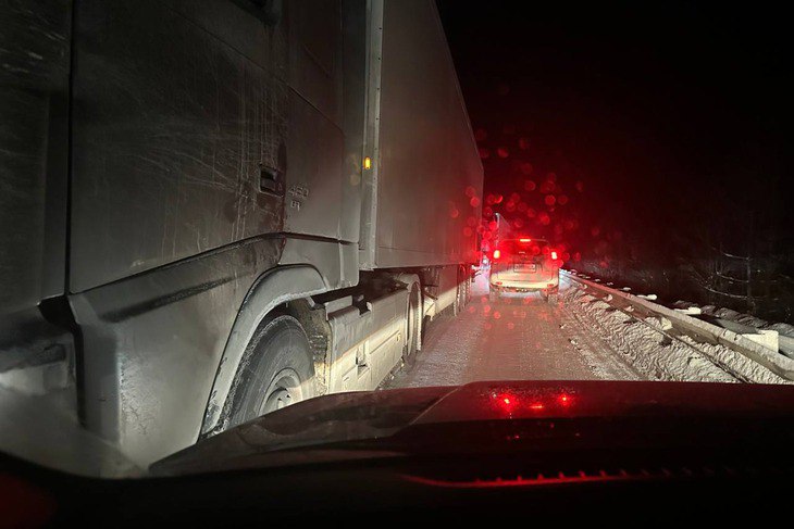Проезд по трассе оказался заблокирован из-за плохой погоды и нарушения правил ПДД водителями большегрузных автомобилей. Людям пришлось ждать девять часов при 18-градусном морозе.