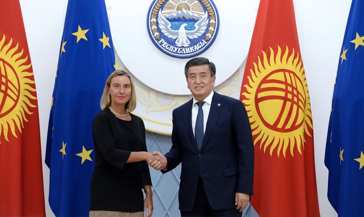 В рамках официального визита верховного комиссара по иностранным делам и политике безопасности Евросоюза Федерики Могерини в Кыргызстан состоялась ее встреча с президентом Сооронбаем Жээнбековым.